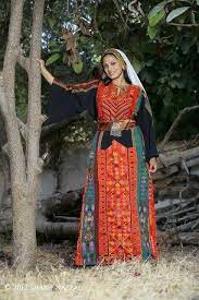 والذي يتميز بلونه الأحمر للعروس الفلسطينية والأزرق للأرملة.