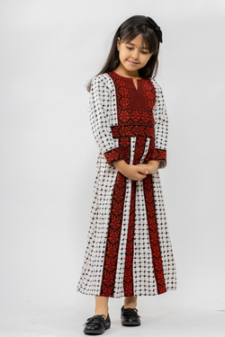 جلابية الحطة الفلسطينية مستوحاة من تراثنا العريق، تأكيداً على أصالة تراث فلسطين واستحالة تقييده من قبل احتلال، جلابية مطرزة على قماش الكوفيه الفلسطينية أو كما تسمى الحطة، بنقشات رائعة تحيي ثقافتنا وثقافة أجدادنا وقصة عصرية تناسب فتيات هذا العصر، وتأتي مع حزام مطرز.