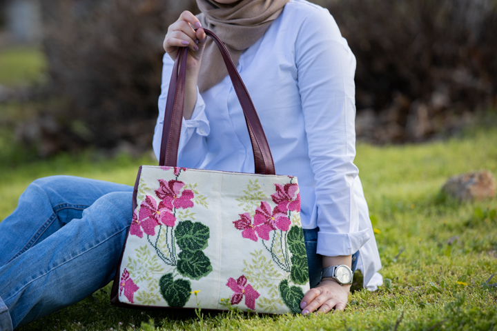 حقيبة يد كبيرة مصنوعة من خامة عالية الجودة من الجلد، مطرزة بأجمل نقشات الورود الفلاحية بجيبين داخليين، ومبطنة ببطانة مخمل
