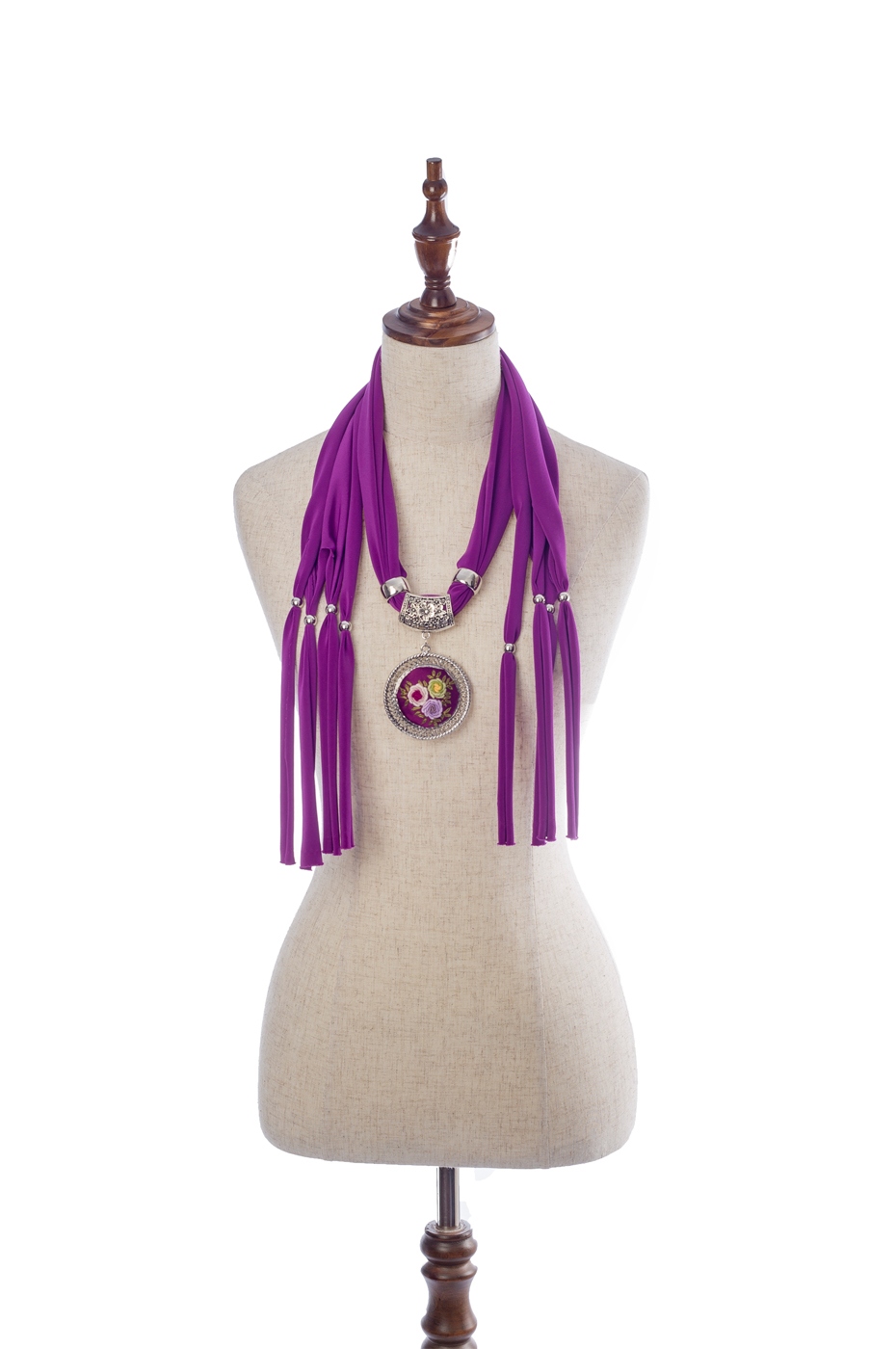 تألقي بسكارف من قماش اللايكرا مع قلادة من الأنتيك مطرزة بالتطريز البرازيلي بخيط الحرير ومزين بكرات فضية لامعة، بتمازج أنيق في الألوان لتزيني به إطلالتك على مدار اليوم صنعته لك بحب إحدى الصبايا المحترفات من نابلس يمكنك تنسيقها مع البدلات الرسمية لإطلالة مكتبية أنيقة، أو في طلعات المساء مع العائلة والأصدقاء.