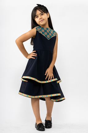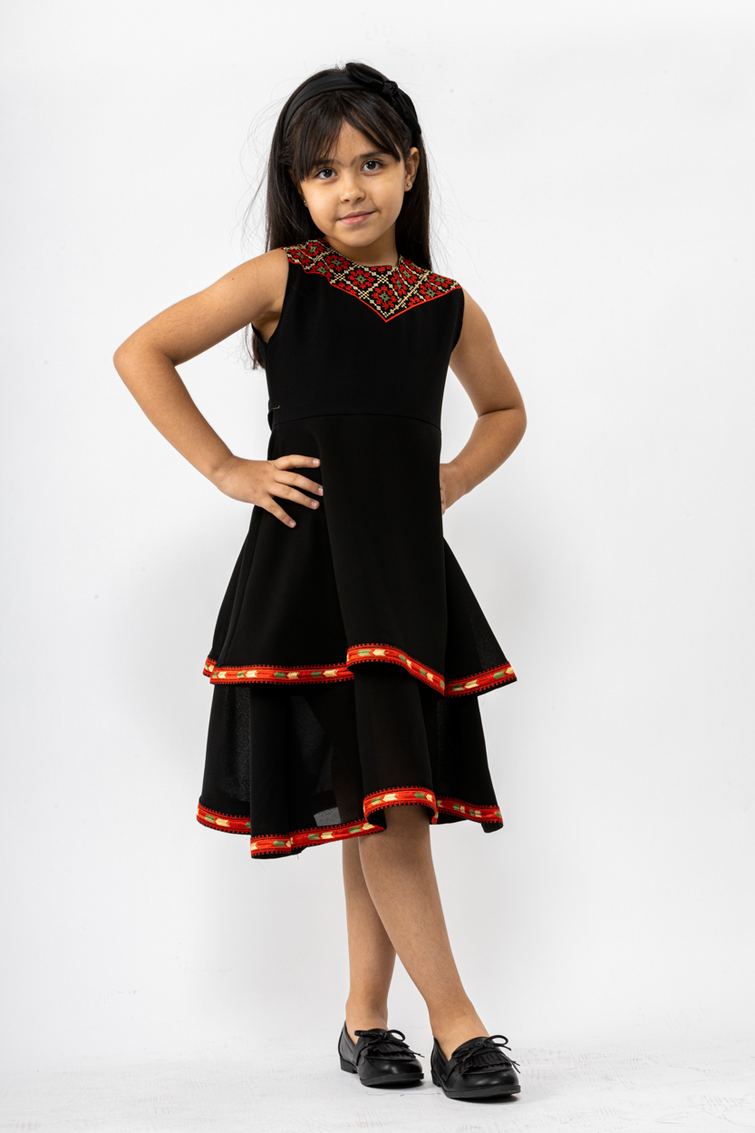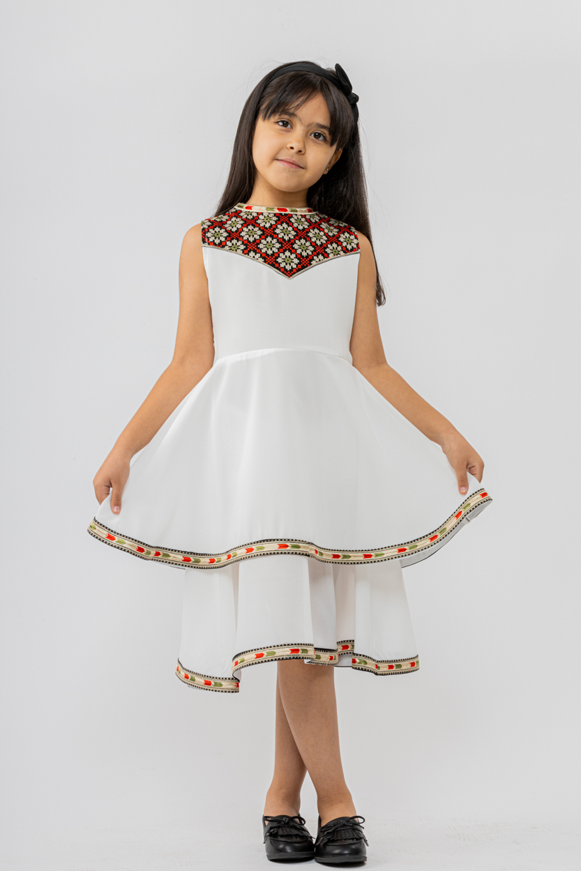 فستان صبا بتصميم فريد ومميز بتطريز ورود ناعم على الصدر، ورفرفات من الأسفل