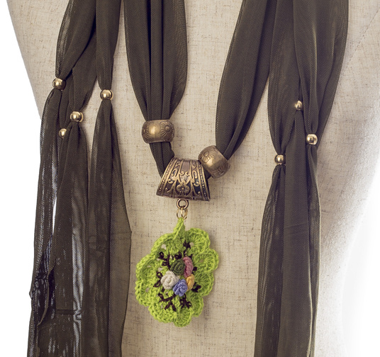 سكارف ورود كروشيه المميز من متجر السندس بقلادة ورود مصنوعة من الكروشيه بأيدي محلية، ومزينة بورود بألوان متداخلة