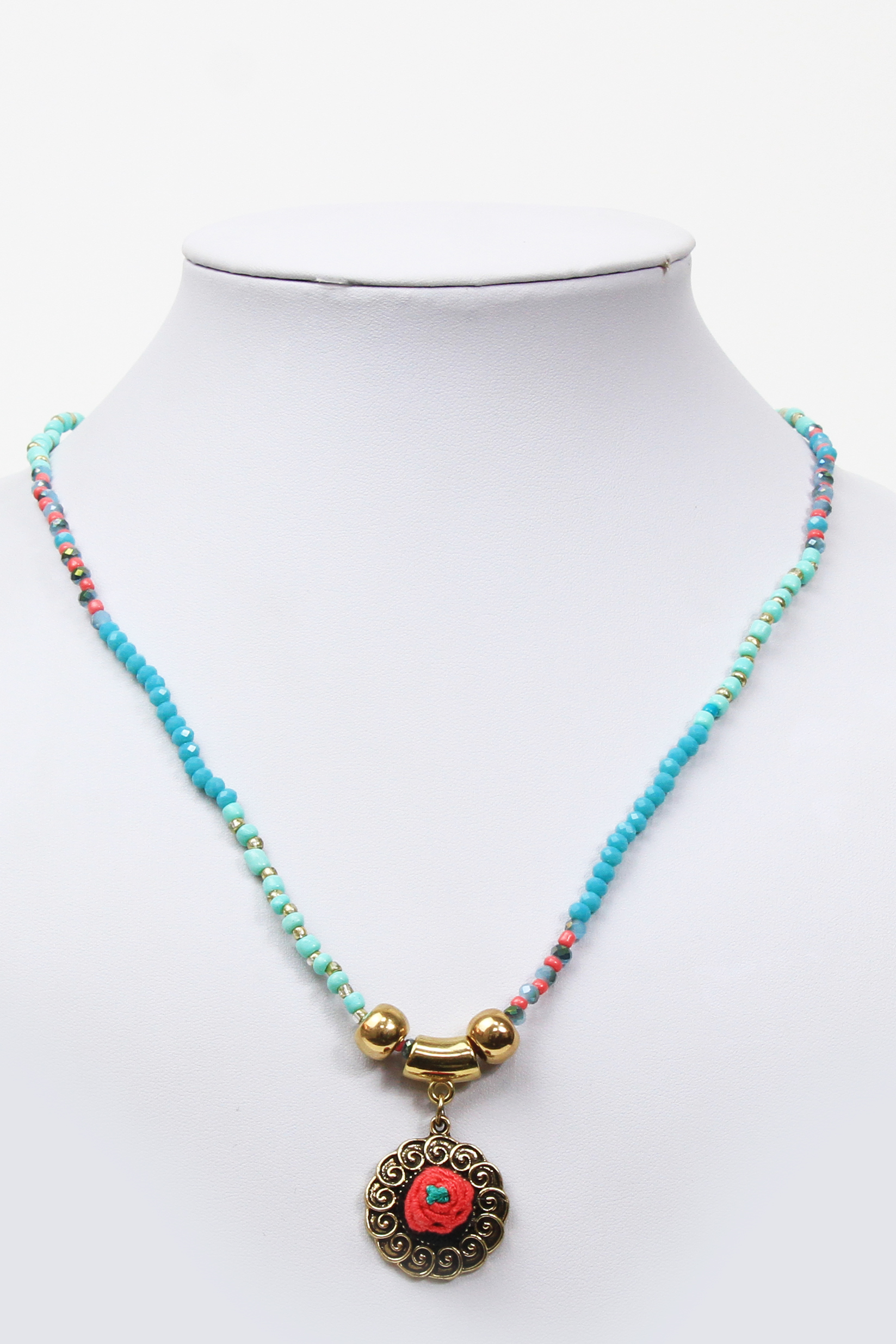 عقد خرز مع قلادة انتيكا مطرزة بتطريز برازيلي بنقشات ورود بألوان جذابة ومتناسقة لتضفي بُعداً آخر لمظهرك في كل المناسبات