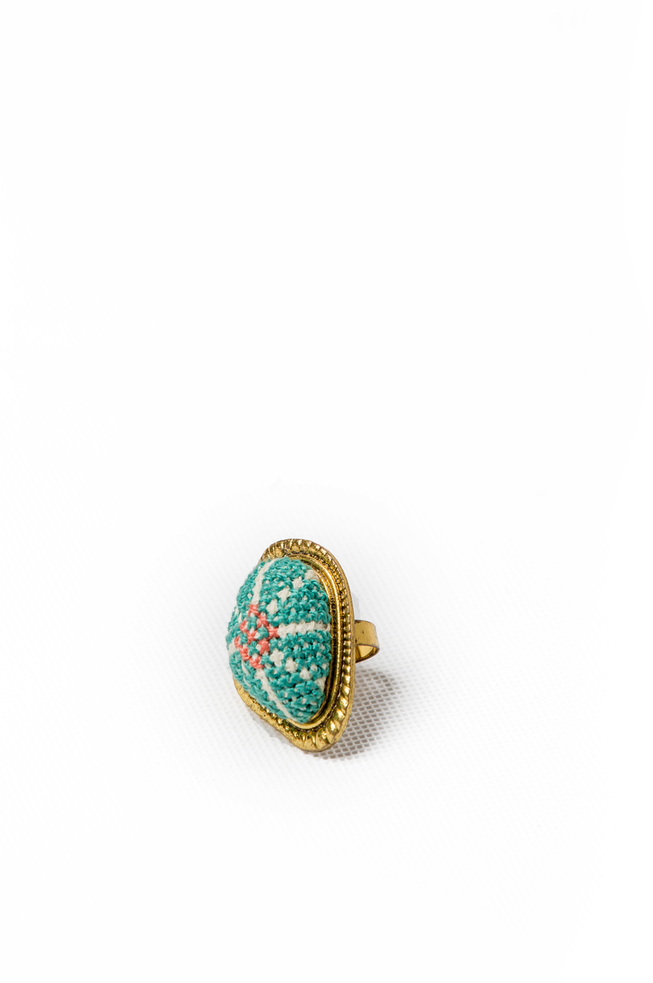 خاتم مطرز يدويا بكل حب واتقان بأجمل النقشات الفلسطينية على شكل خارطة فلسطين لترتديه بأهم مناسباتك فلن يخذلك أبداً
