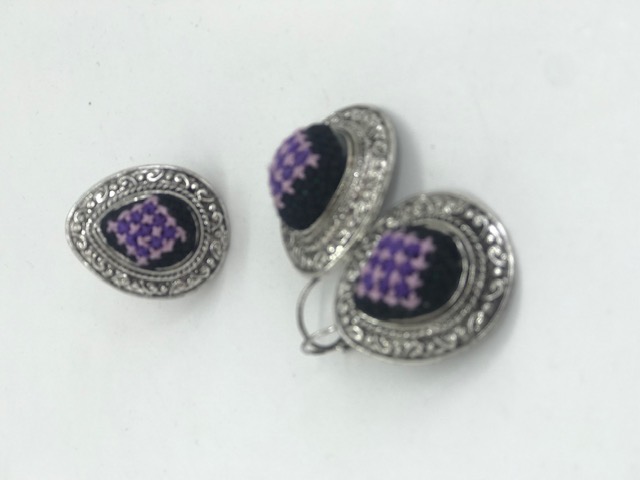 طقم خاتم وحلق تطريز فلاحي باليد بأجمل النقشات الفلسطينية