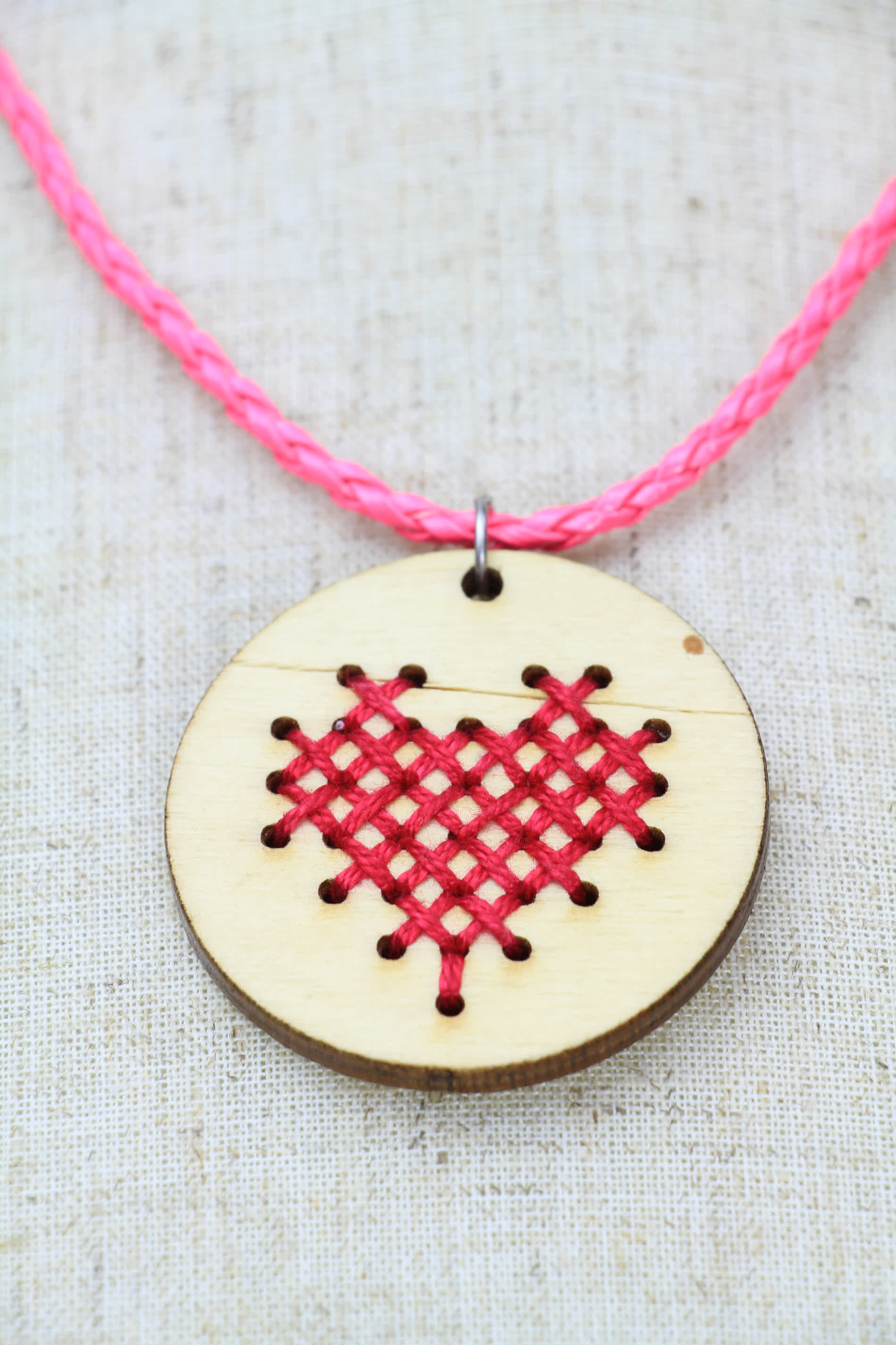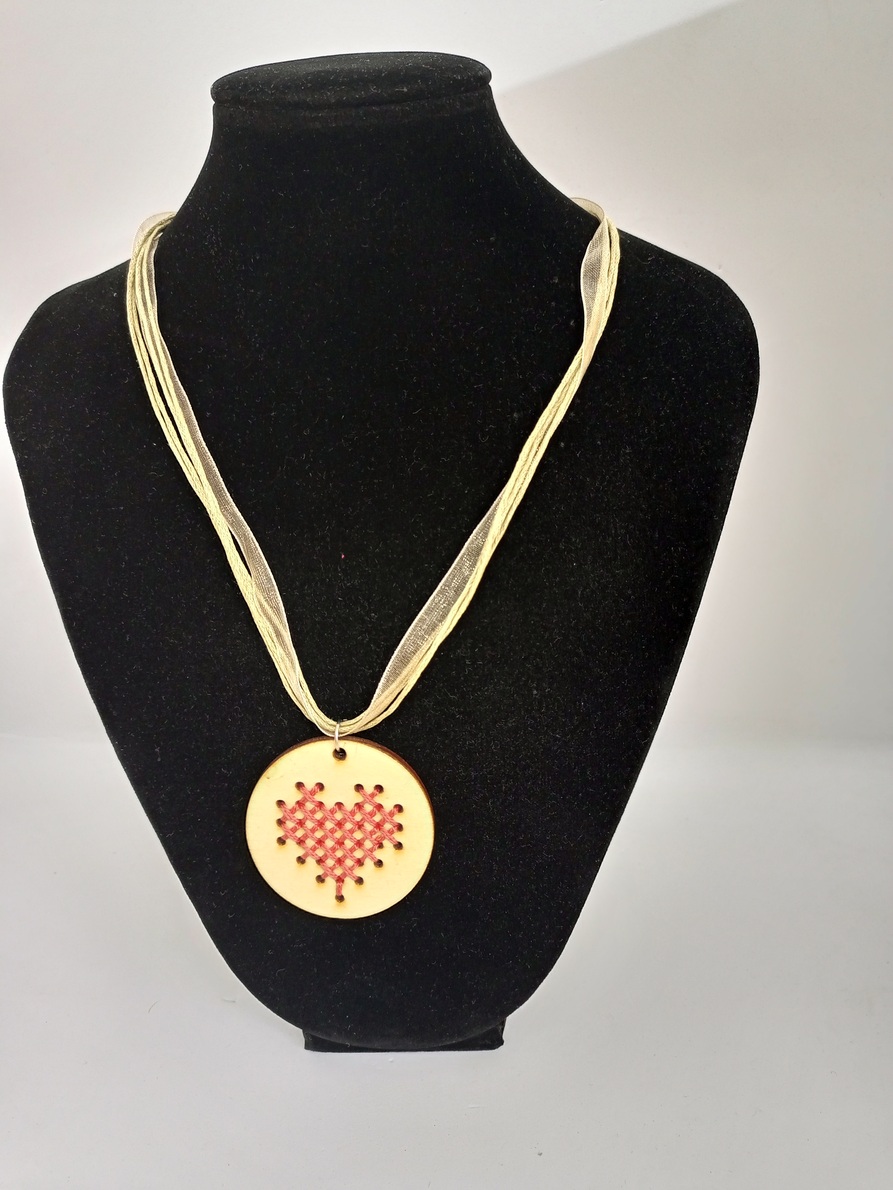 عقد خشب مطرز بتطريز ناعم على شكل قلب بألوان ربيعية لا تقاوم