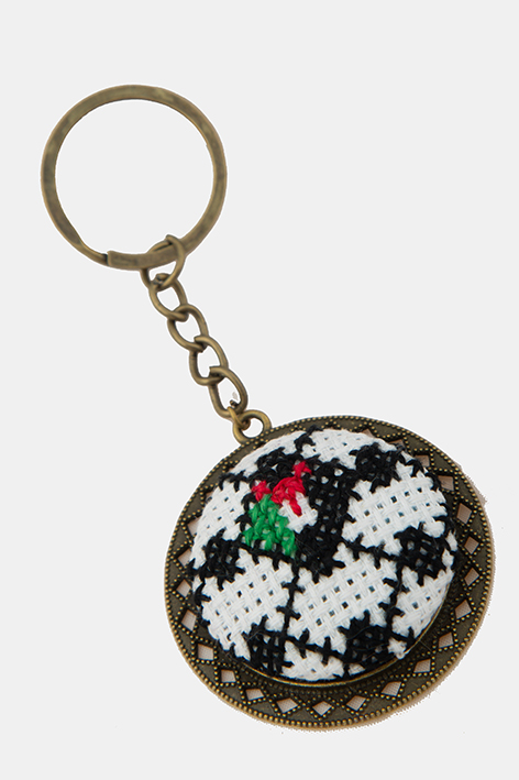 ميدالية مفاتيح مشغولة يدوياً ومطرزة بكل حب واتقان باللون الأبيض والأسود الوان الكوفية الفلسطينية ليبقى الوطن خالداً بين أكفافنا