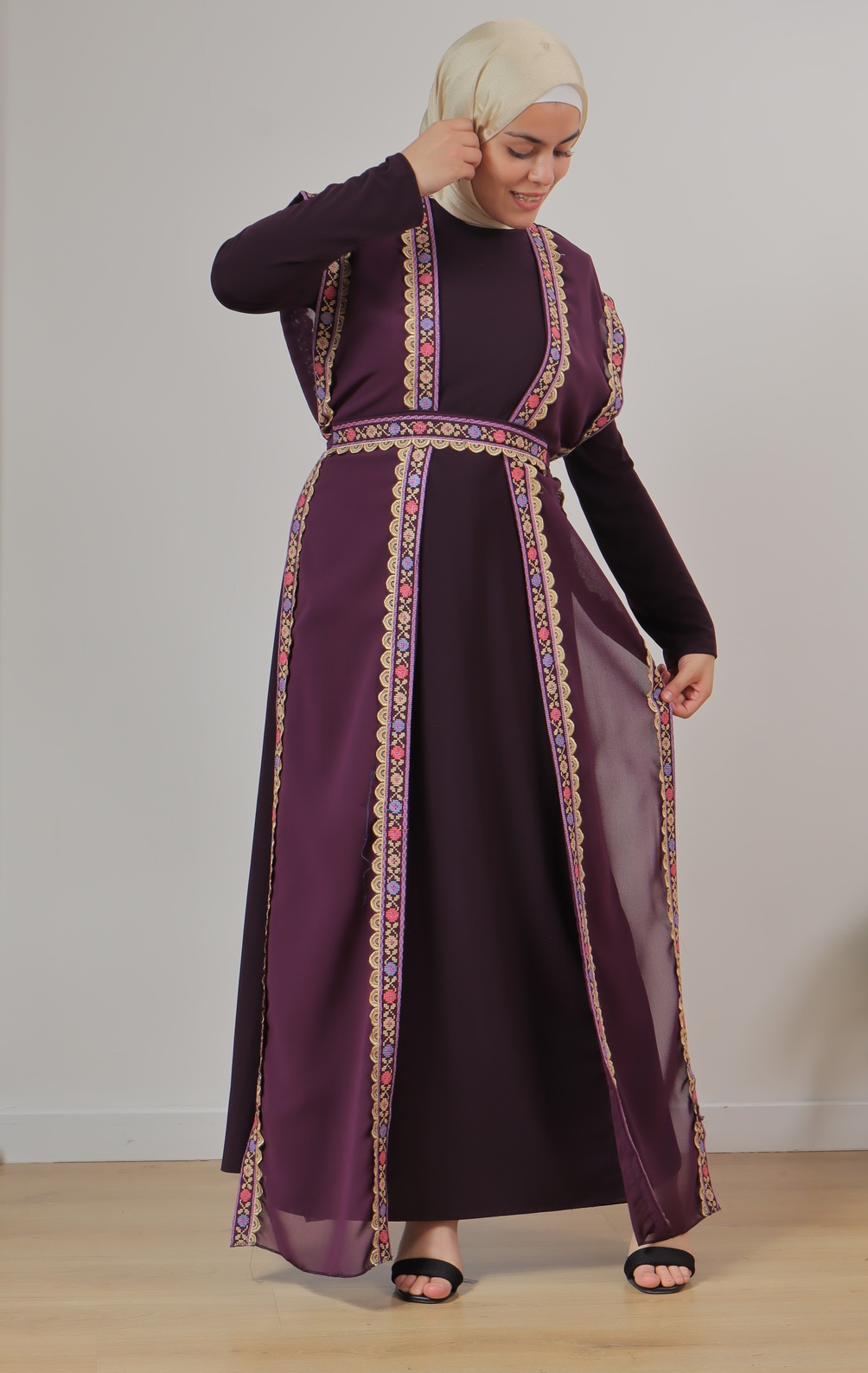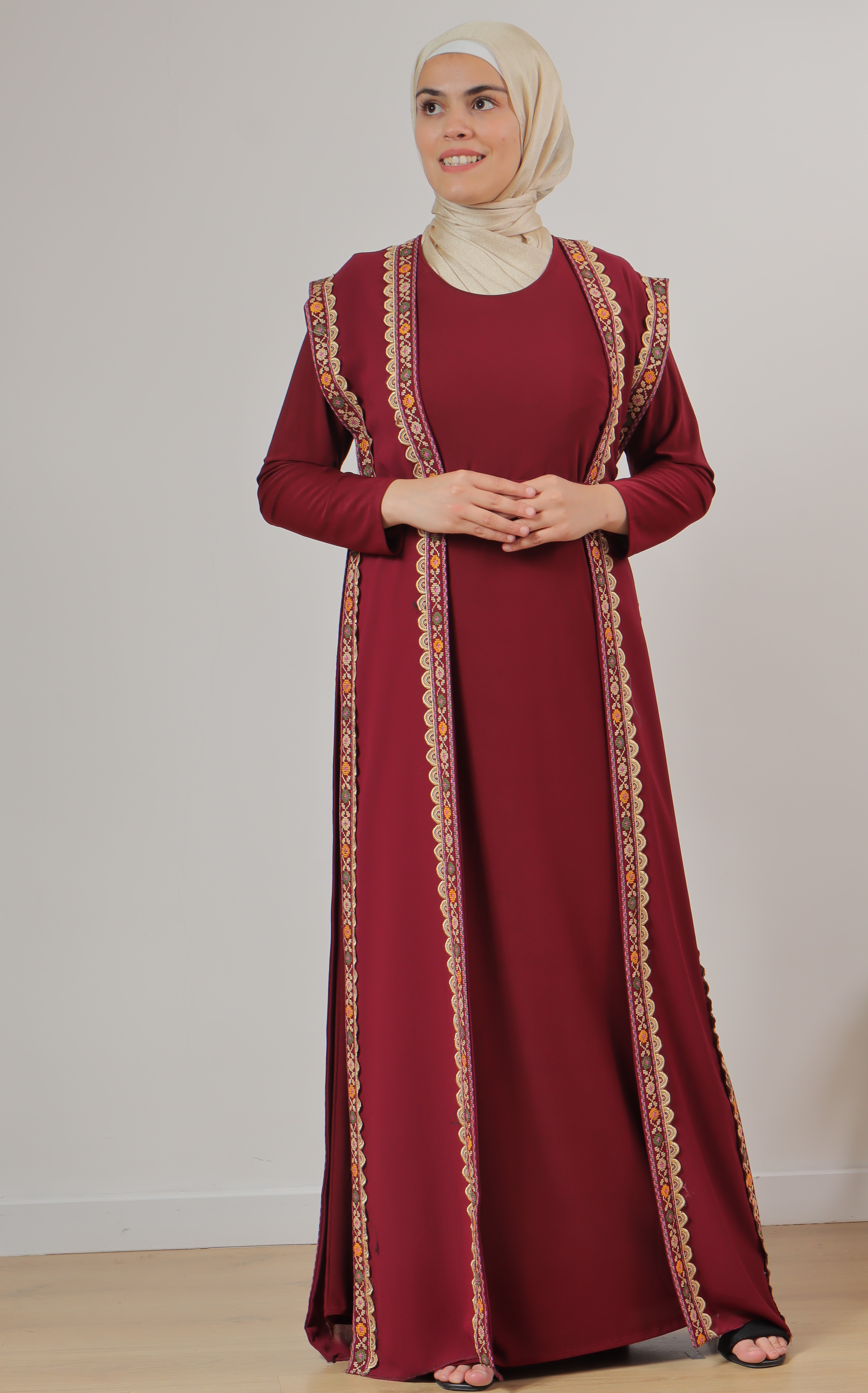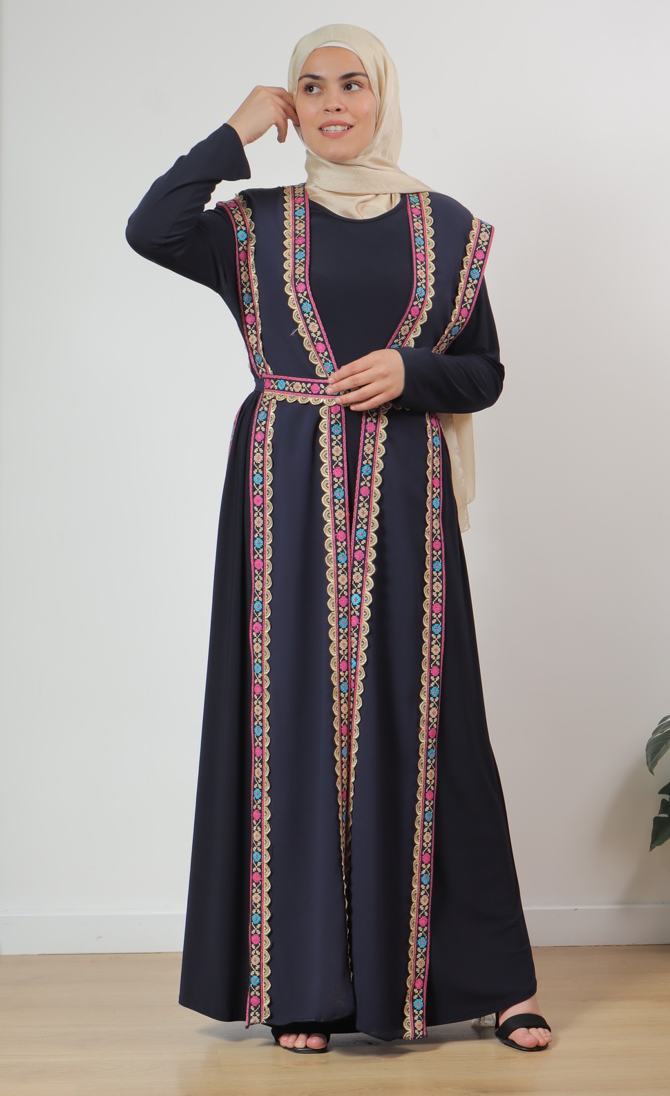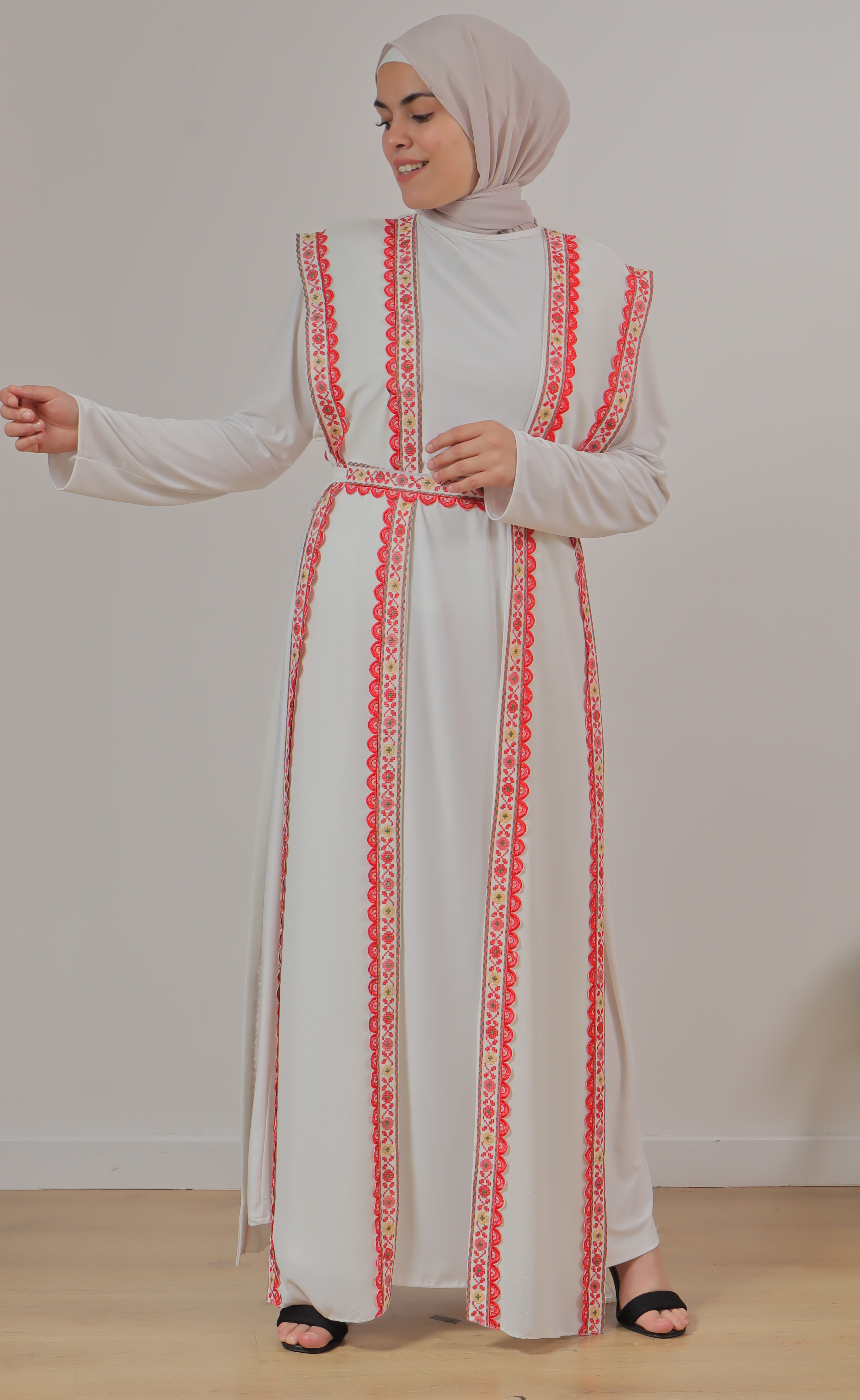 بشت الريم خيار مثالي لإطلالة عصرية لا تخلو من روح التراث، يأتي بدون أكمام، مفتوح بالكامل مع حزام منفصل وبطانة داخلية، مع فتحات جانبية