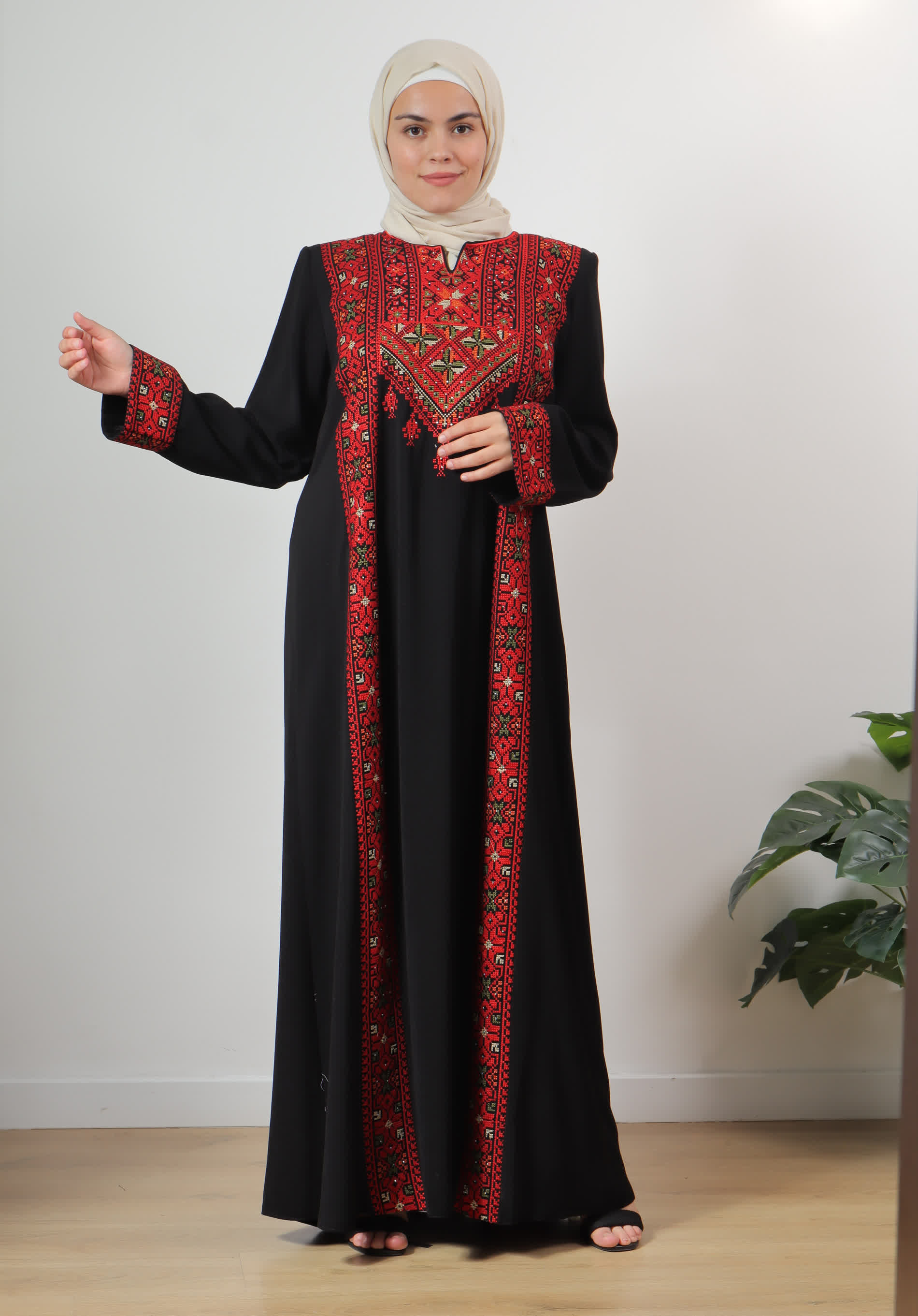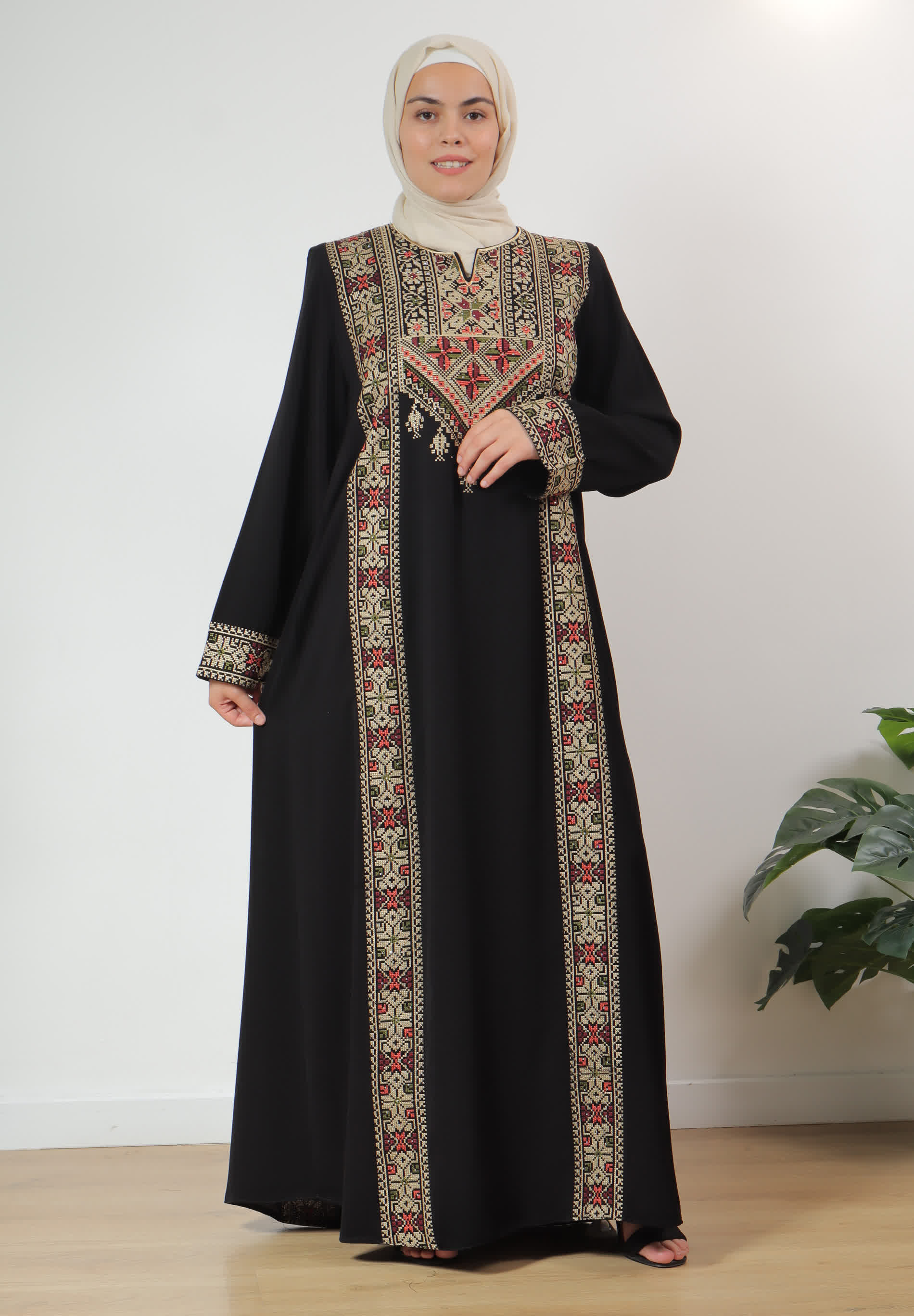 ثوب أليف بتصميم عرقين من الأمام ومن الخلف، مطرز بأجمل النقشات الفلاحية التي لا تقدم مهما طال عليها الزمن ليكون ثوب كل زمان ومكان.