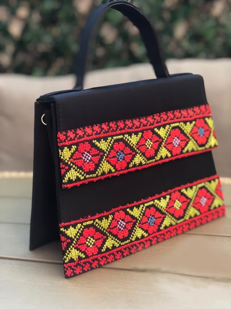 حقيبة يد مشغولة يدوياً ومطرزة بأجمل نقشات الورود الفلاحية