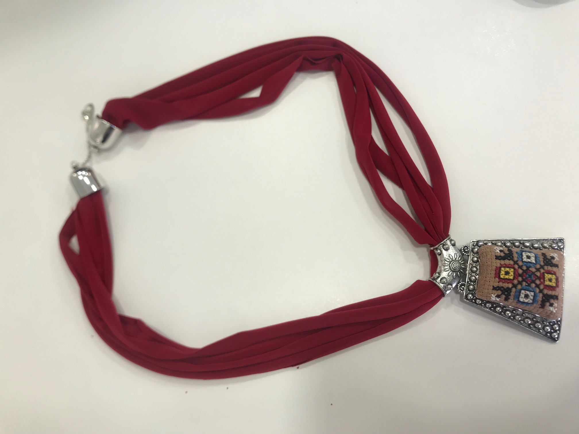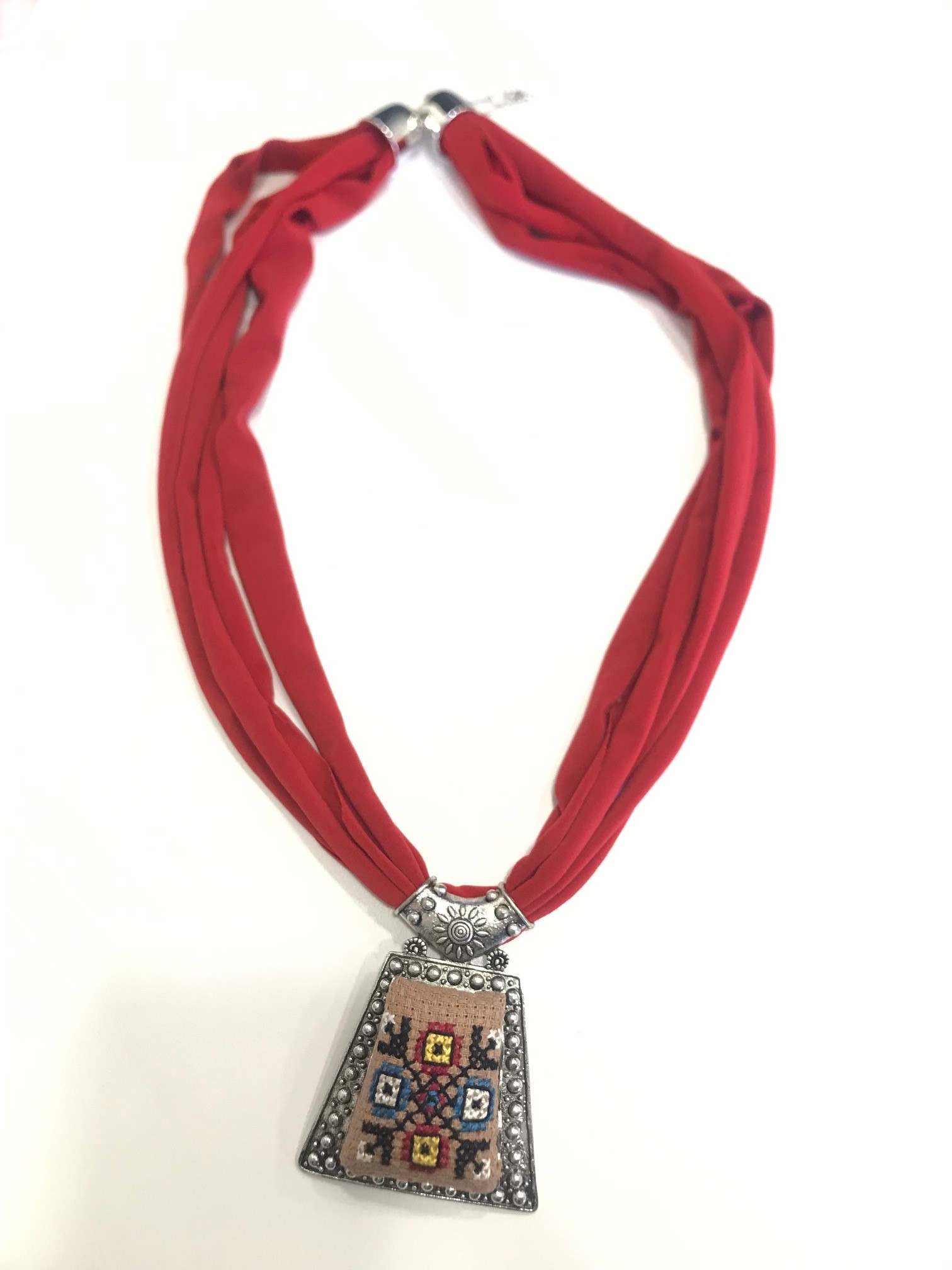 عقد ليكرا بقلادة بنية اللون مطرزة بالتطريز الفلاحي العريق، بلون يشع بالحياة ليمنحك لمسة اضافية مذهلة