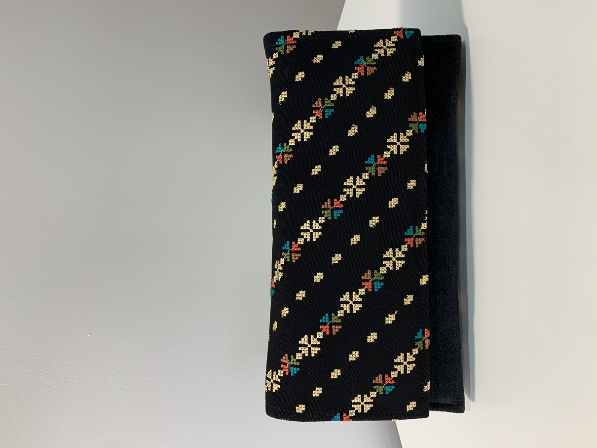حقيبة كلاتش أربع بتلات مطرزة بالتطريز الفلاحي الفلسطيني بأجمل النقشات، مشبعة بالتراث بتطريزها الفلاحي، تغلق بزر ممغنط من الأمام، وتتكون من جيبين خارجيين مع سحاب داخلي بجيب للعملات المعدنية